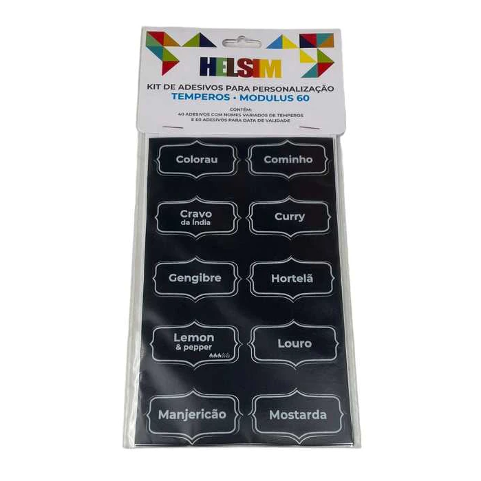 ADESIVOS Pretos PARA POTES DE MANTIMENTOS São indicados para potes MANTIMENTOS seja de vidro, plástico ou madeira. São ótimos para organizar a sua cozinha e seus mantimentos, facilitando muito na hora de achar o que você precisa! A impressão dos adesivos é feita em vinil autoadesivo, com boa resistência à água. Informações sobre o produto: - Contém 40 etiquetas adesivas preta com escritas em branco, já vem com meio corte para destacar; + 60etiquetas de validade - Formato das Etiquetas: 3cm x 5,2cm - Vinil plástico Autoadesivo ; - Etiquetas já são auto colantes, você só precisa destacar da cartela e aplicar no local! >>> O que vem escrito nas etiquetas? Este anúncio é referente a 40 etiquetas e nelas vem escrito: Açafrão Curry Pimenta do reino Alecrim Gengibre Pimenta rosa Alho frito Hortelã Sal grosso Anis-estrelado Lemon pepper Sal rosa Bicarbonato de sódio Lovro Salsa Canela Manjericão Salsinha Cebola desidratada Mostarda Tempero para aves Cebolinha Noz moscada Tempero para carnes Cheiro verde Orégano Tempero para feijão Chimichurri Paprica defumada Tempero para peixes Coentro Paprica doce Tempero para saladas Colorau Paprica picante Tomilho Cominho Pasta de alho Cravo da India Pimenta calabresa A aplicação é simples? Sim! Limpe bem a superfície antes da aplicação, retire o adesivo do liner e aplique cuidadosamente. Não indicamos aplicar sobre superfícies texturizadas ou rugosas. Posso limpar? Sim, pode limpar e molhar que não estraga. Evite passar produtos abrasivos nas etiquetas e não esfregue o adesivo com esponjas. *Fotos de potes meramente ilustrativas, ou seja, os potes não estão inclusos.